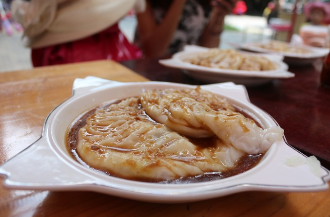 潮汕的肠粉跟广深的不一样,包成月牙形状,里面有香菇、白菜、豆腐、猪肉等馅料,再配以潮汕特有的酱汁,很清淡,味道很赞!
