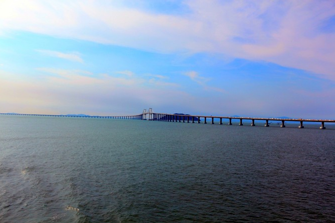 从船上远眺南澳大桥。快到港的那刻,发现桥上大塞车。果然,去南澳岛旅游的人还是很多的,突然发现脱离南澳岛旅游攻略或是网上那些南澳岛旅游游记,跟着心走还是很不错的,也很庆幸我们坐了船,不然我们也是在南澳岛南澳大桥上赛车了。还好这塞车让我们赶上了161公车,然后顺利达到预订的客栈。