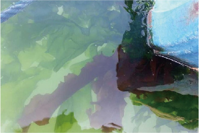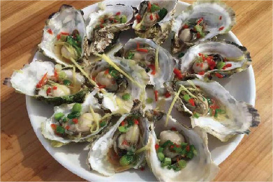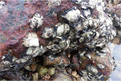 颜色很新的印子就是刚刚被剥下的生蚝留下的痕迹。