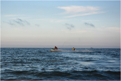 吃过海鲜大餐,差不多下午五点左右,正好可以到海边去走走,不会太热了,天气正好,可以在海边臭美,嬉戏,游泳。海上有快艇和海上摩托,一人50 。