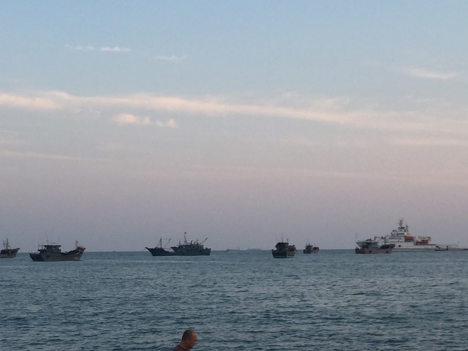 安顿好已经下午四点多,就在酒店附近的沙滩走走,渔船码头上吹来腥腥的海风,孩子玩沙子捡贝壳,捡到一个超级肥硕的大贝壳。夕 阳西下,晚霞中的海滩美不胜收。
