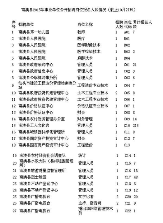 南澳岛事业编单位竞争越来越激烈,越来越多的孩纸想回家发展啊。