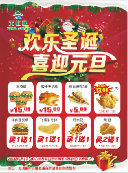 欢乐圣诞,喜迎元旦,世纪华联超市旁艾比客汉堡,特价优惠风暴来袭,活动时间有限哦!